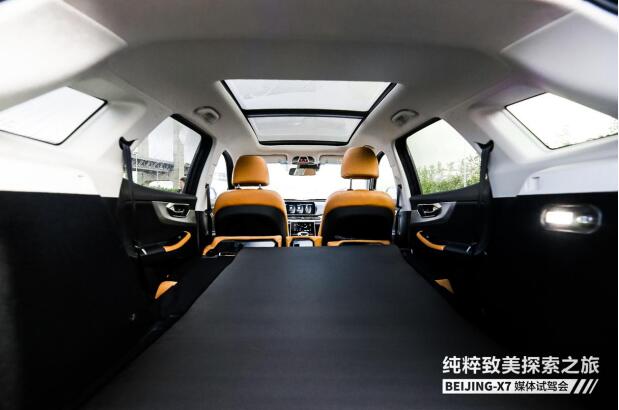 BEIJING-X7同级独有的King-size双纯平空间,其中纯平后排地台大幅提升了后排舒适感;后排座椅可接近180°放倒,使后备箱与后排区域打通,进一步扩大了后备箱的储物空间。值得注意的是,灵活多变的后排座椅搭配全车28处灵活储物空间以及同级独有的雨伞收纳槽营造出车内“魔术空间”,实现了丰富的空间拓展性。无论是一家人惬意的长途旅行,还是临时装载货物,它都能从容应对。