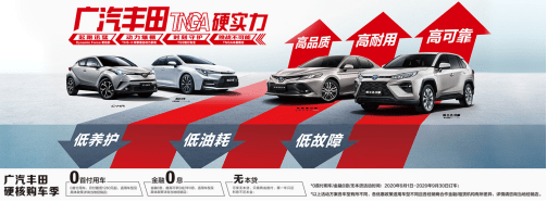 9月1日-30日期间,广汽丰田推出“硬核购车季”活动,提供丰富礼遇,包括:1,0首付用车,月付最低1280元起;2,金融0息:最高可享5成2年0利息;3,无本贷:至低首付2成,第一年只还利息不还本金。