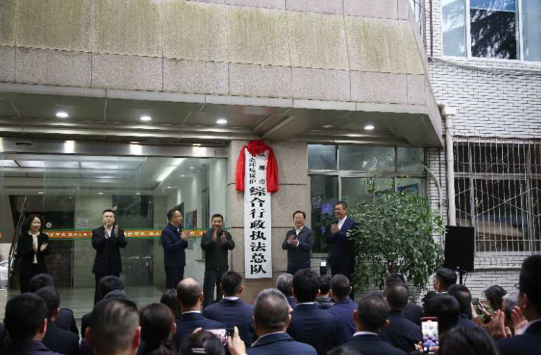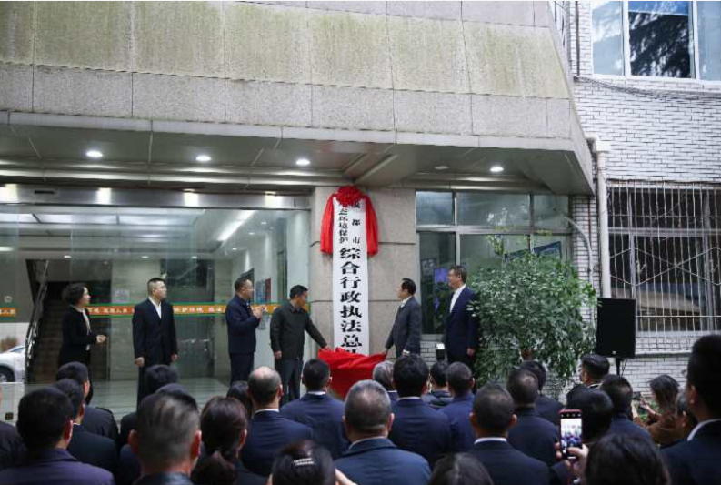 在热烈的掌声中,李岳东和左正共同为成都市生态环境保护综合行政执法总队揭牌。