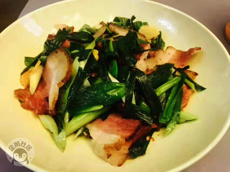 腊肉作主料、辅以新鲜采摘的葱苗,