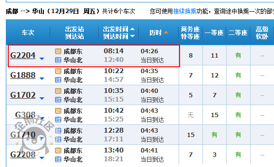 并且!!现在已经可以买元旦的车票啦,趁好多人还不晓得,赶紧下手了!!成都直达华山北,全程4.5小时,票价318.5元!