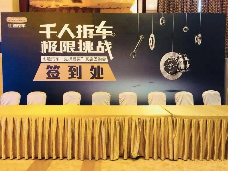 这就得说到我们此次看到的比速汽车“千人拆车,极限挑战”活动。简单的八个字,活动内容简单明了,就是在众人面前拆掉比速汽车这款主力车型——比速T5。