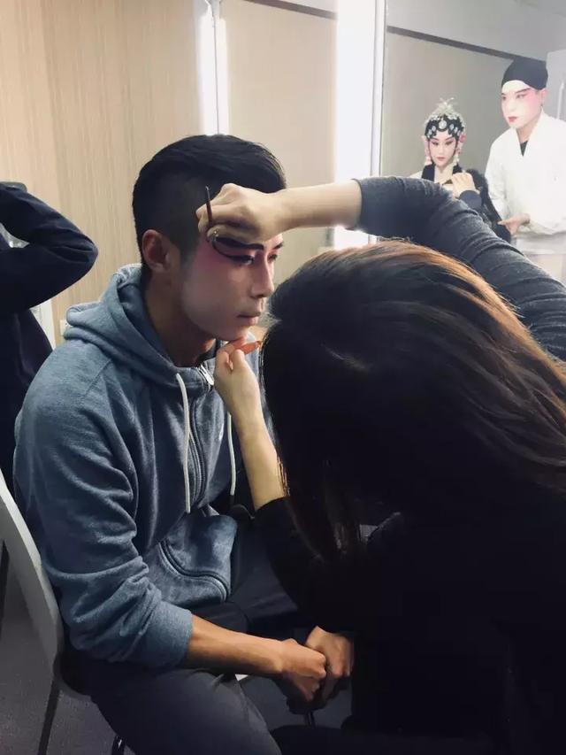 负责给我化妆的女队员其实也算不上熟识,刚开始上手勾描时,我和她都承受了巨大的心理压力。但既然是无畏之旅,就要豁得出去,在漫长的上妆过程中,我们彼此鼓励,竟然越画越顺。最后的成果也得到了专业昆剧演员们的高度认可。而睁开眼睛,在镜子中看到了一个完全不一样的自己,心里还是相当震撼的——原来一个五大三粗的汉子,还可以有这样精致的妆容。跟随昆曲老师再摆几个动作,念几句戏词,也让我更直观地感受到了传统戏剧的无穷魅力。释放自己的“天生无畏”,总会收获前所未有的惊喜。