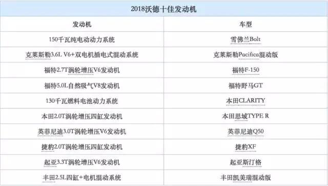 近日,2018沃德年度十佳发动机的评选结果正式公布,今年获奖的10款发动机中包含有4款新能源动力(包括2款混合动力、1款纯电动、1款燃料电池动力),大排量发动机仅一款福特V8发动机上榜。值得一提的是,这次评选中德国品牌车型的发动机全部落榜。