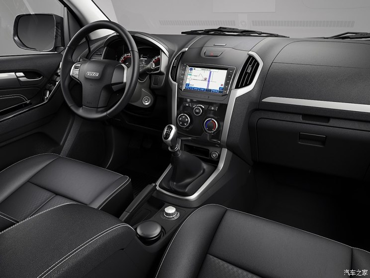 内饰部分沿用了大部分D-MAX的设计风格,最大的区别在于空调控制区,由现在的三旋钮和按键取代,看上去要更简洁些。其标配了前排双安全气囊、货厢宝以及侧踏板,此外高配车型还配备了皮革座椅、中控彩色大屏以及多功能方向盘等。