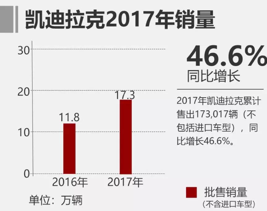 就2017年销量来看,凯迪拉克是目前在华豪华品牌中仅次于BBA的品牌,2017年销量突破17万台,同比增长达46.6%,这也是入华以来最好成绩,同时也遥遥领先BBA之外的豪华品牌。其中,XT5累计销售63748辆,同比增幅达83.3%。
