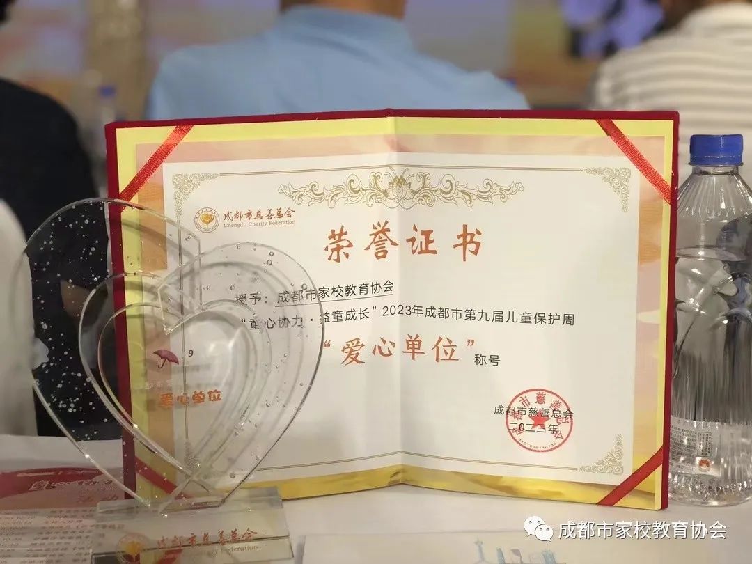成都市家校协会在此次活动中荣获“爱心单位”称号,协会也将继续参与到未成年人保护的行列,托起更多希望,助力孩子们一同成长。