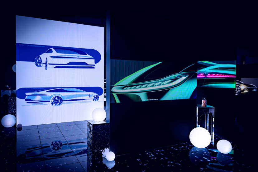 再比如车身侧面部分,隐藏式门把手与无边框电吸门相搭配,虽然能够让产品变得简洁且有未来感,但也容易显得单调,所以为了提高侧面的辨识度,设计师增加了一条的黑色下腰线,型面自然流动的交错光影与自然形成的上腰线形成了强烈的明暗对比。