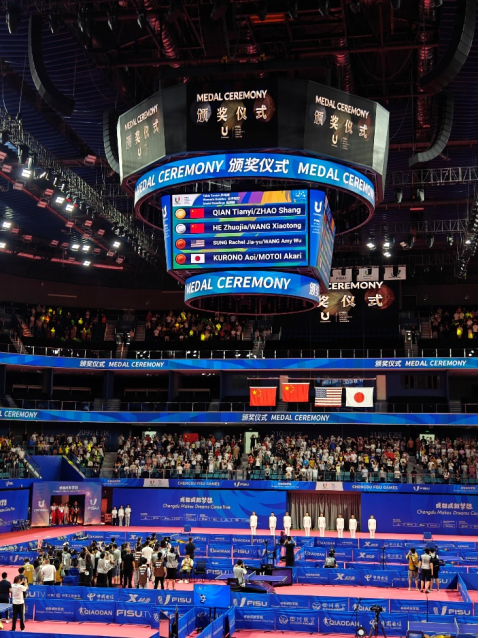 观看乒乓球决赛,见证中国大运健儿夺冠瞬间