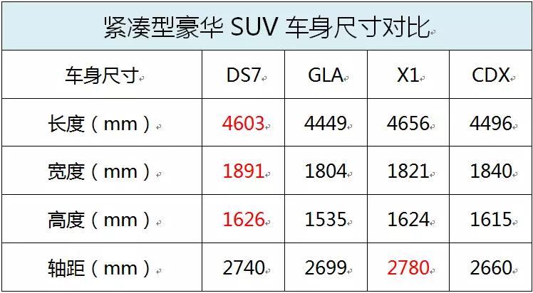 全新DS7配备了1.6T高低功率的两种发动机,低功率版本182马力/250牛米,而高功率版本则达到了220马力/300牛米。这个动力无论是高功率还是低功率对比同价位的奔驰GLA、宝马X1、广汽讴歌CDX都是DS7完胜。