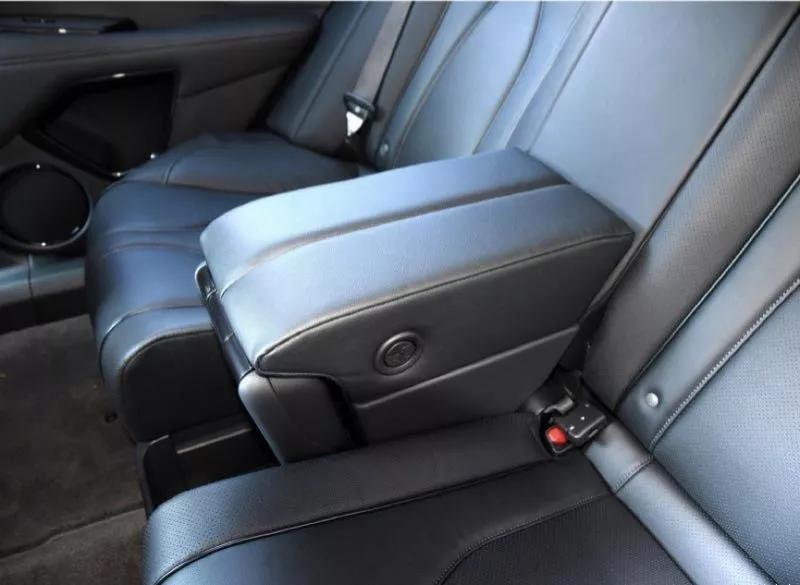 其次,后排中间坐垫升起来就是扶手,扶手前端翻起来就是杯座。这一个很别致用心的机械设计给整台车增加了不少的逼格。