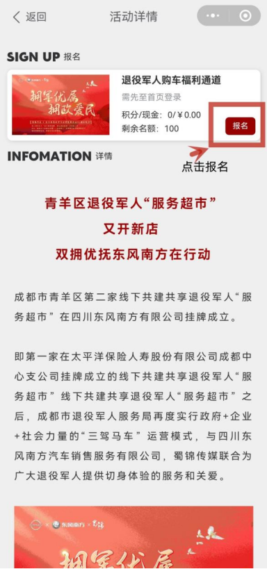 对以上车型感兴趣的退役军人朋友可以点击报名留下信息,我们将会有工作人员与您联系并且安排到店看车试驾。