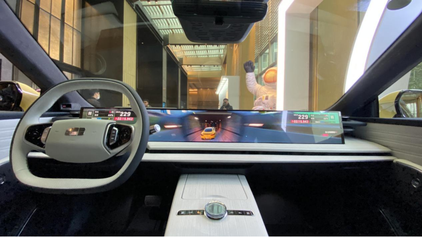 如今的车机游戏太多太丰富了,比亚迪都还能玩王者荣耀呢?可当我们看到那个场景时,巨长的屏幕拉伸了赛车游戏的立体感,流畅的游戏体验,优秀的渲染,那种体验是震撼的。我们第一次有了想在车上打游戏的冲动,于是等到小孩父母试驾完毕后,顺势夺下孩子手中游戏手柄,开始了一场全新的,惊险的刺激的游戏体验。