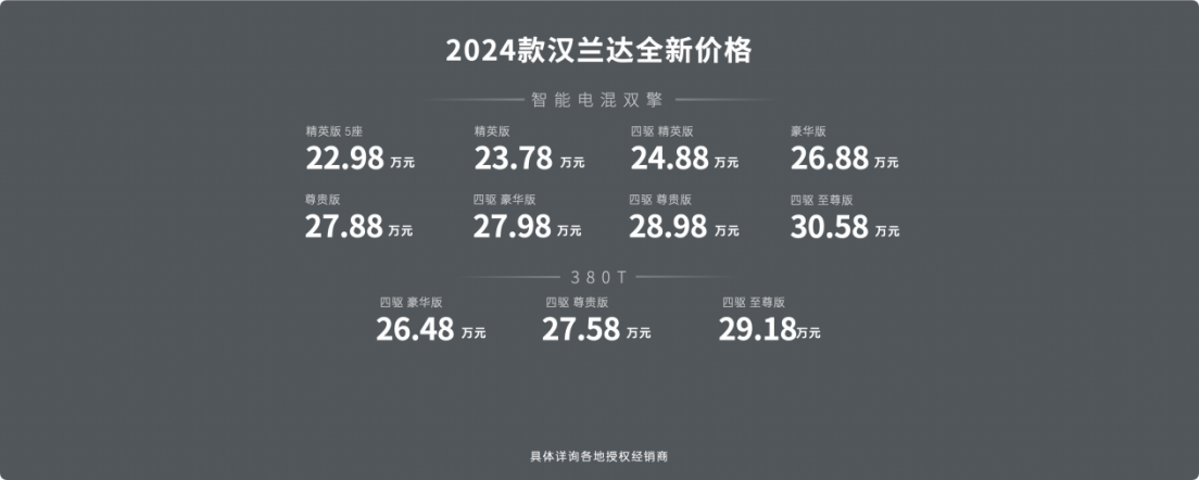 就在5月31日,新的2024款汉兰达也正式上市,综合官方APP权益后售价区间为22.98-30.58万元,相比2023款车型,最高降幅达5.3万。现在最入门的七座版本,价格仅为23.78万,一下将汉兰达从30万级大七座SUV变成了20万级大七座SUV。并且在价格降低的同时,配置却是大幅提升。可以说,新款汉兰达,降低的是价格,提升的是配置,不变的是品质。