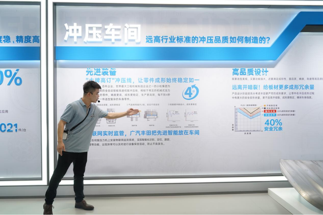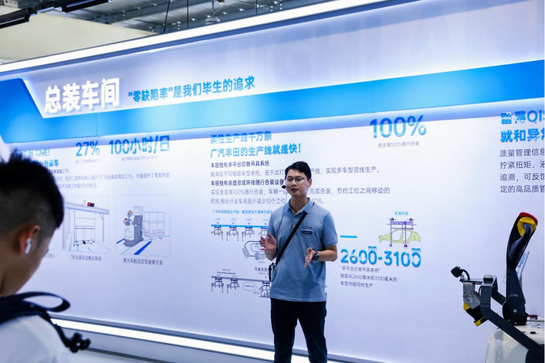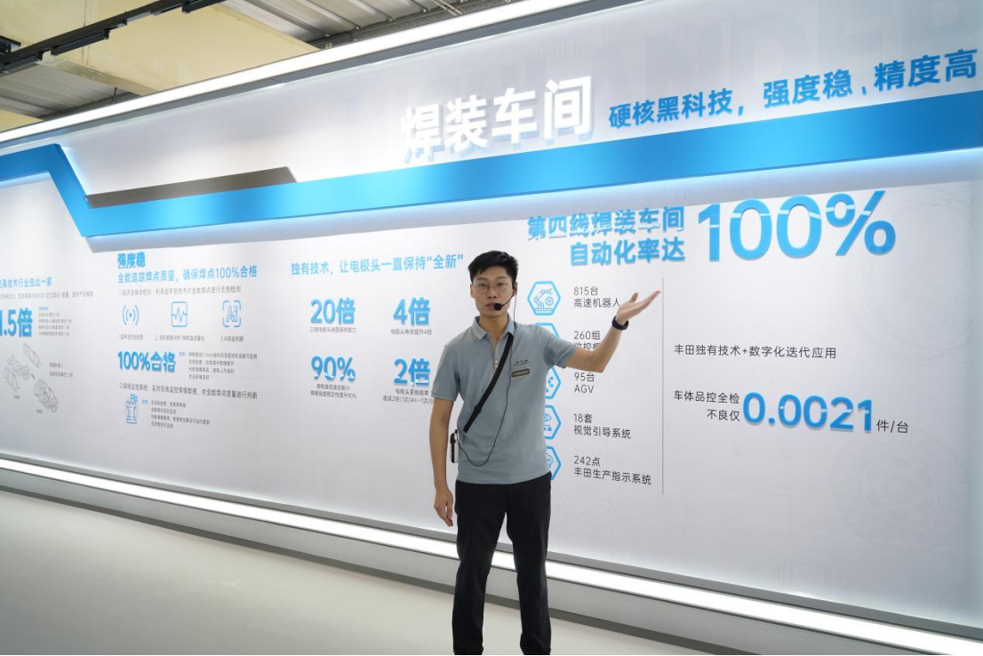 总装车间每58秒就会下线一台新车,99.7%以上的车辆一次检查合格。还有质量管理信息系统(QIS)100%监控关键部位的拧紧扭矩、液体加注等等重要品质参数;通过可追溯,可反馈,可判断的人机交互系统,实现稳定的高品质管控体系。