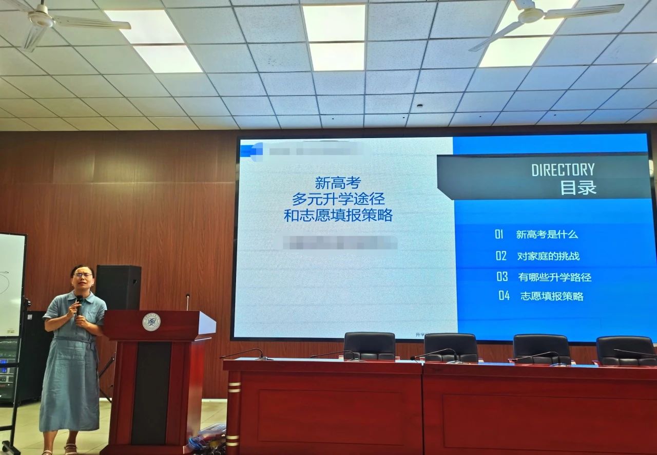 成都市家校教育协会副会长、生涯教育专委会副主任陈筱芝作《新高考多元升学途径和志愿填报策略》专题讲座。陈老师指出学生在不同阶段的重点任务,明确了在初高中阶段生涯规划的重要性。