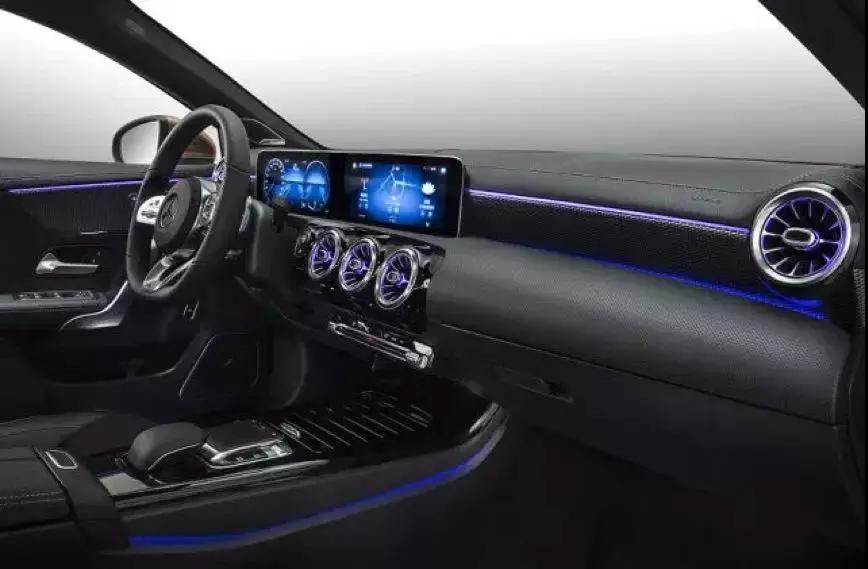 进入到车内,你才能发现全新奔驰长轴距A级车是为年轻消费者量身打造的一款车型。新车的仪表屏及中控大屏设计风格来源于奔驰S级,由两块10.25英寸的超大高清屏幕组成,但悬浮式的设计风格赋予了这款车年轻得气息。加上64色环境氛围灯、喷气式飞机涡轮造型的炫光可变出风口、些许碳纤维装饰条,整车的内饰更能俘获年轻消费者的芳心。