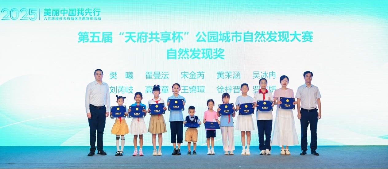 近年来,天府新区生态教育成果频频涌现。现场举行第五届“天府共享杯”公园城市自然发现大赛颁奖仪式,50余名优秀师生现场领奖。据了解,公园城市自然发现大赛已成功举办五届,覆盖全区120余所学校,创作自然笔记作品5万余幅,优秀作品5000余幅。今年,天府新区生态环境和城市管理局携手重庆市生态环境局两江新区分局,特别设立“美丽新区”生态艺术十佳作品专项奖,从自然笔记作品中评选出独具创意与感染力的优秀之作,共绘生态艺术新画卷。