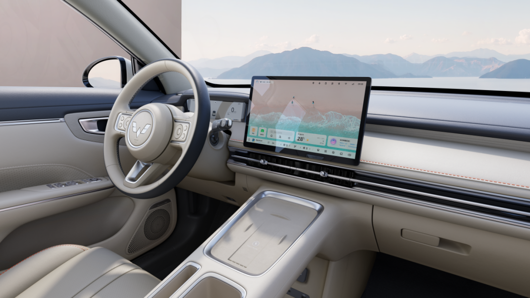 新车提供柔白与暖棕双色内饰,柔白内饰以“晨光初醒”为灵感,营造出北欧极简般的静谧氛围;暖棕内饰复刻斜阳下金沙的流动质感,用质感传递高级时尚的格调。3D质感木纹工艺汲取日内瓦钟表纹理原木纹理为灵感,在细节处体现质感;搭配大面积的软质皮质包覆及高亮镀铬装饰,优雅中更显高级。