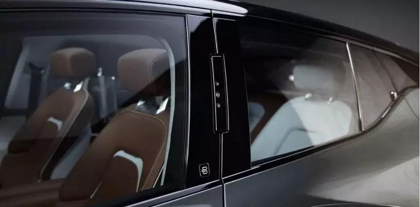 车身侧面,厉害的东西来了,在B柱上能看到摄像头,这里面装备了人脸识别功能,可以通过人脸识别驾驶员信息,并打开车门。同时,传统的后视镜也已经被摄像头所代替,将会由广角摄像头来窥探后方情况,然后在车内屏幕上显示出来,达到传统后视镜的效果。