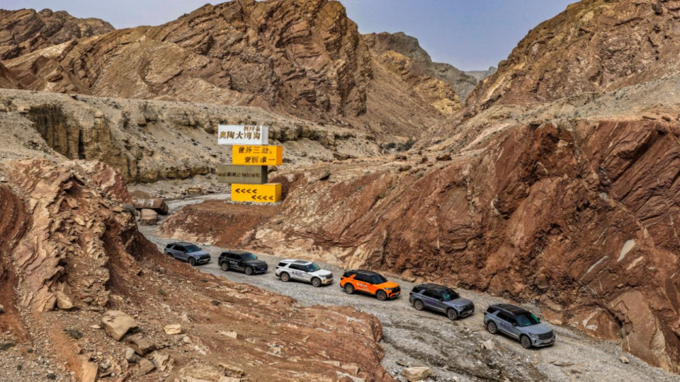 柯坪大湾沟,曾是奥陶纪的浅海世界,如今却成为越野车的“天然试炼场”。在这片沉睡4.5亿年的地质奇观中,锋利如刀的岩层断面犬牙交错、超30cm落差的沟壑纵横密布,页岩与砂岩交替形成的复合地层,每一寸都暗藏杀机,考验着每台车的极限通过性能。
