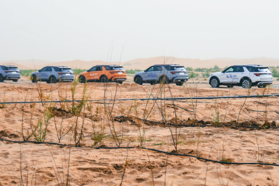 一路向前,福特探险者不仅以实力穿越“死亡之海”,更将探索的热情转化为守护的责任。为助力锁边巩固与生态修复,长安福特捐赠10000余棵幼苗,带领车主用户深入塔克拉玛干腹地锁边扩绿。在治沙专家的指导下,福探长们系统学习科学治沙技术,并亲手栽种红柳,以实际行动为构筑“绿色长城”贡献力量。
