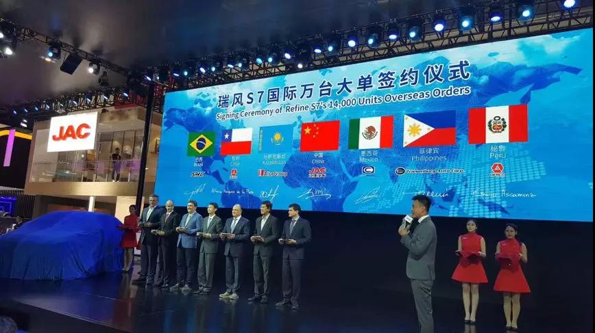 虽然在近两年里江淮汽车在国内的销量不怎么景气,然而在国外,江淮汽车却有着不错的销量。车展上,江淮汽车与巴西、智利、哈萨克斯坦、墨西哥等国家签订了瑞风S7的万台订单。