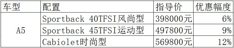 也就是说,在此次豪车“官降潮”中,奥迪明显有些心不在焉。一方面,就算官降了,也只是在原本的优惠幅度上加以微调;另一方面,又迫于舆论压力不得不官降,那就拿个A5出来降价吧。