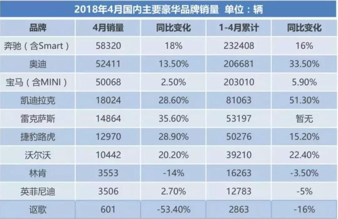 豪华品牌对于消费者永远有着不可抗拒的吸引力,虽然进入2018年以来,全国乘用车市场同比销量略微下滑,不过主流豪华品牌的表现还是稳中有进的,个别品牌的增幅还非常大。当然也不是所有的豪华品牌都是如此,两极分化很大。