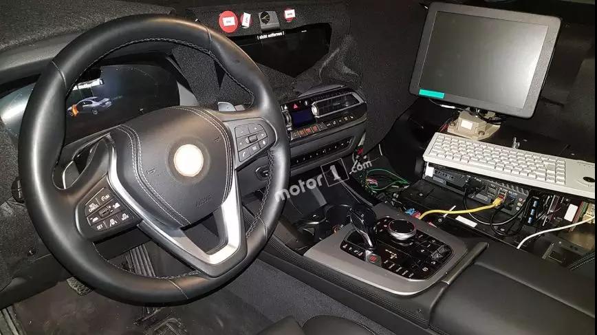 外观方面并没有太多可介绍的,为了匹配巨大的前脸采用了更大尺寸的进气格栅,大灯和宝马X5一样采用开眼角设计。车牌下方将会放置一个感应探头,预计是为了将来在上面搭载一定程度的自动驾驶而准备的。