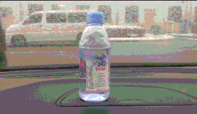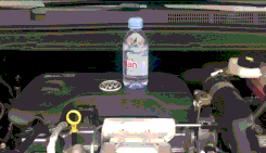 在发动机怠速状态下,Ray特意打开引擎盖,在发动机上放了一瓶水,结果和预想的一样,抖动非常明显。