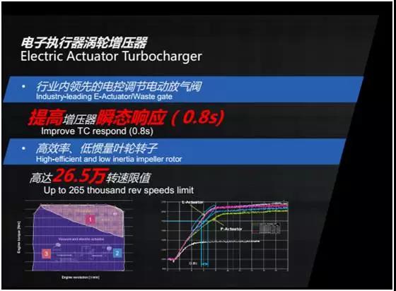 在整个行驶过程中,发动机涡轮表现的非常线性。由于采用了电控泄压阀+低惯量涡轮增压技术,电动涡轮在不同工况下都能自动调节泄压阀和涡轮正压值,不仅能迅速的将涡轮保持在正压状态,而且可以降低小负荷带来的泵气损失,在满足低扭时,带来更快的加速响应,这也就是为什么在试驾途中感觉不到明显涡轮迟滞的原因。
