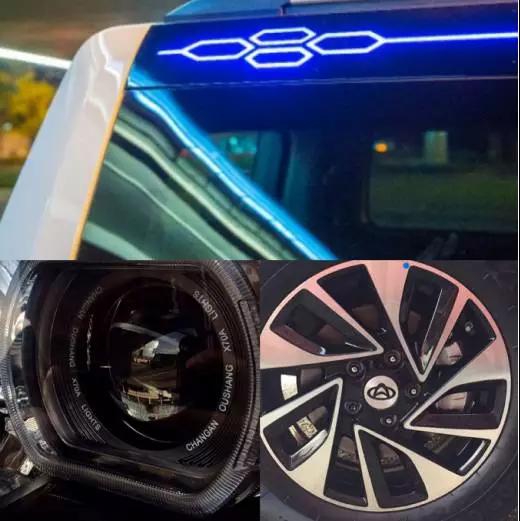值得注意的是,欧尚X70A全系装配的均是205/65R16的轮胎,相比较大的车身,轮胎和车身相比,显得小了一些,如果在高配车型上能有稍大尺寸的轮胎区分也许会更好。外形上有两个亮点值得一提,一是它的近光灯使用了透镜,其设计模仿了单反相机镜头,有些创意。二是它的侧面尾部顶端,有一组氛围灯设计,车辆启动后会发出蓝色的光源,晚上会显得比较漂亮且独特。