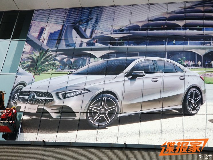 我们发现新车官方命名为“A-Class L Sport Sedan”,其中的L预示着其轴距将有所加长。新车前脸采用了全新A级两厢版车型的设计风格。细节方面,其大尺寸的前格栅搭左右配两侧上扬的大灯组让该车看上去十分凶狠。同时格栅内部家族式的繁星设计,也为前脸增色不少。