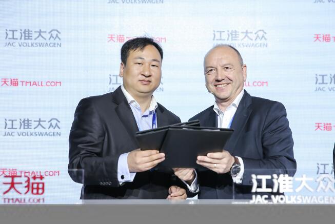2018年04月26 14:51 来源:蜀锦传媒4月24日,由大众汽车集团(中国)与安徽江淮汽车集团股份有限公司合资成立的江淮大众汽车有限公司(以下简称“江淮大众”)与浙江天猫技术有限公司(以下简称“天猫”)签署谅解备忘录,共同探索和开发全面数字化的销售与营销模式。合作旨在通过天猫汽车销售平台,联结江淮大众充满活力且对数字化触觉敏锐的客户群体。本月,江淮大众还将面向市场发布首款新能源汽车。