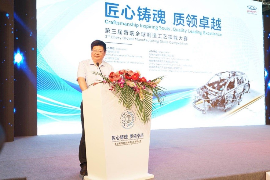 奇瑞汽车股份有限公司党委常委、工会主席、副总经理冯武堂出席闭幕式并讲话。他强调, 第三届奇瑞全球制造工艺技能大赛,是整个奇瑞集团大家庭的技术“奥林匹克”盛会,是集团各企业技能水平的一次“大阅兵”。奇瑞全球制造工厂以及合资企业工厂技师们,亲密无间,共同磨练,追求共同进步,必将推动汽车制造 “工匠精神”在集团内生根、开花结果,为实现“匠心打造卓越品牌”的愿景打下坚实基础。