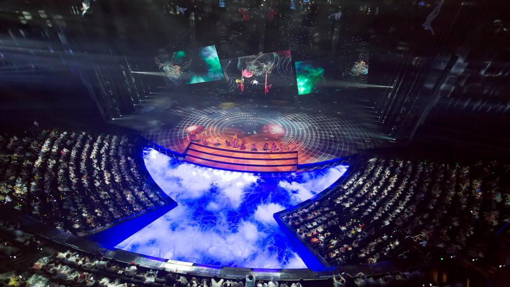 演出全程都巧妙穿插着独具魅力的中华文化元素,最具代表性的便是这座“庆典鼓”,其原型来自战国时期著名的虎座鸟架鼓(现存于湖北省博物馆)