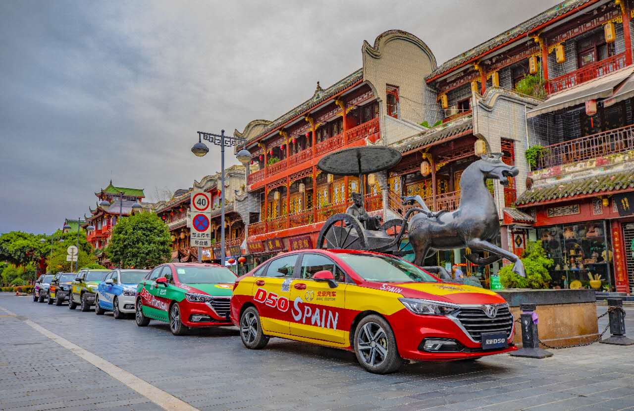 活动从一场声势浩大的“车队巡游”开始。由数台经过精心包装、车身充满夺冠热门球队元素的北京(BJ)20和全新绅宝D50组成的世界杯车队,带着统一着装的车友、球迷从北汽成都经销店出发,一路前行,沿着环球中心、天府大道、九眼桥、天府广场等著名景区及核心商业圈进行全城巡游,为世界杯打CALL助威。