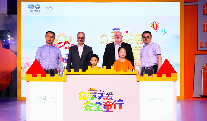 嘉宾与安全小卫士代表共同启动一汽-大众服务品牌儿童爱车堡夏令营