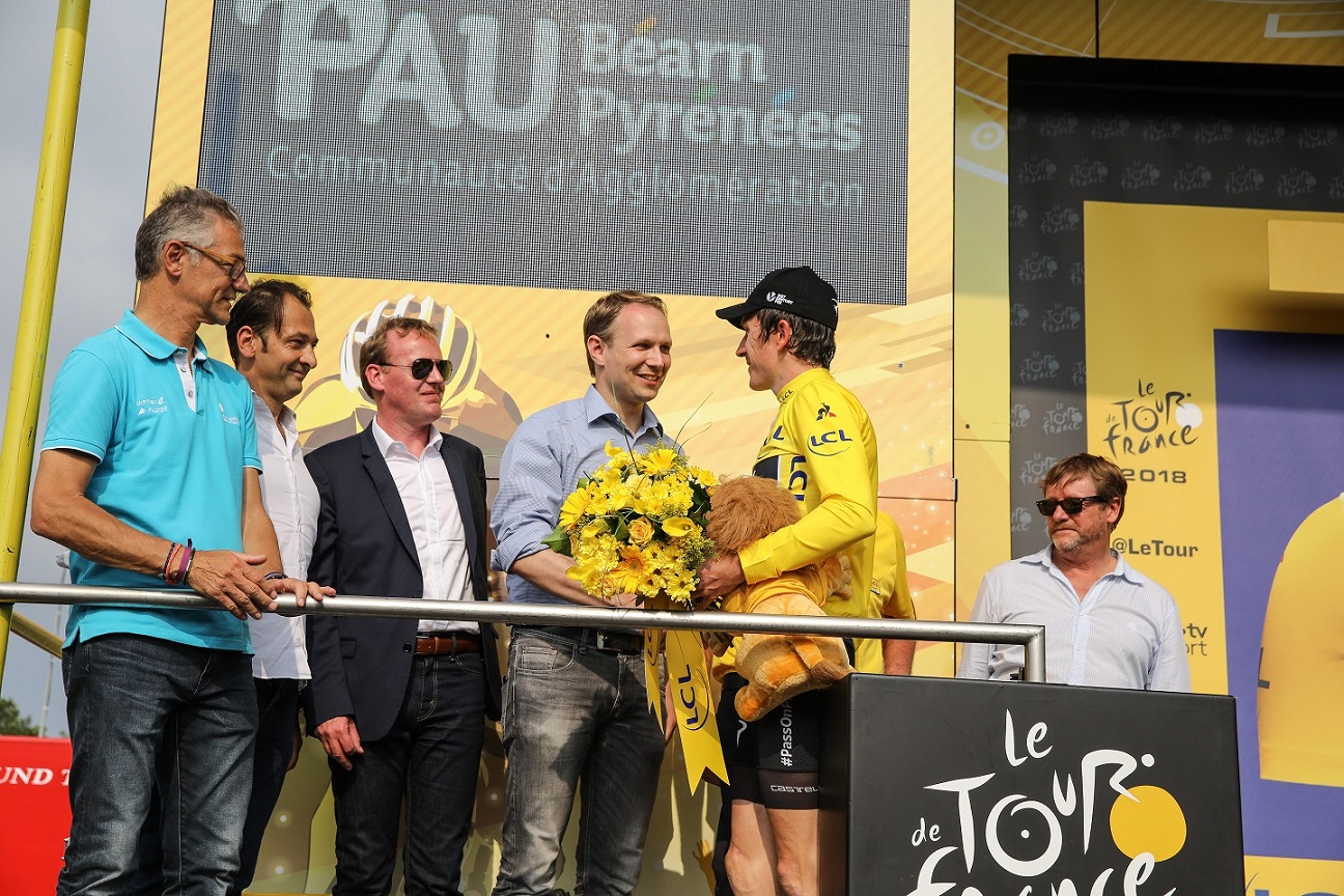 第105届环法自行车赛7月7日从大西洋诺亚芒提亚岛发车,开启了一场充满挑战的比赛。在为期三周的比赛中,176名车手进行了21个赛段的角逐,其中包括多个艰难的高山赛段。随着比赛的进行,杰兰特·托马斯(Geraint Thomas)很快确立了领先地位,表现出夺冠的实力。这位32岁的英国威尔士选手在第11赛段赢得了标志成绩领先的“黄杉”、并一直保持到设在巴黎的终点。即使他的队友、去年环法冠军克里斯托弗·弗洛姆(Christopher Froome)也望尘莫及。