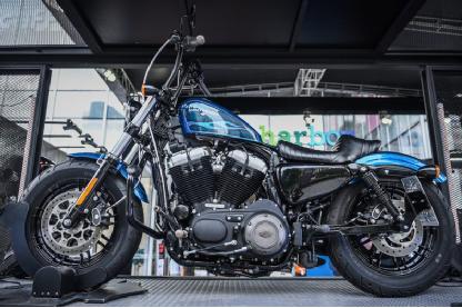 更值得一提的是,活动现场还邀请到了哈雷戴维森2018 “重装上阵”改装车大赛的参赛选手,荆坤先生带着他的爱车“蓝精灵”,一辆被改装成Bobber风格的Sportster 48 来到现场,完成其参赛首秀,也与大家分享了他的改装故事。作为一名热爱复古简约风格的骑士,荆坤先生从一开始便决定了要将Sportster 48改装成复古的Bobber风格,从方案制定到最终的细节刻画,与哈雷戴维森青岛店合作的改装过程也是十分顺畅,在原有高把、空滤、排气已有的改装基础上,荆坤先生更订购了全新青铜配件,不断完善爱车“蓝精灵”的改装过程,更将追逐自由、追求个性的哈雷精神展现得淋漓尽致。
