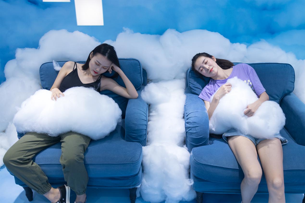 在天籁舒适魔方快闪店,所有的空间与装置都历经艺术的加工,并被赋予理想舒适的体验内核。每一个置身其中的消费者,都能强烈感受到天籁与艺术家的灵感碰撞,从而在这场“体验+艺术”的快闪店中,享受从身体到心灵的全维舒适感。