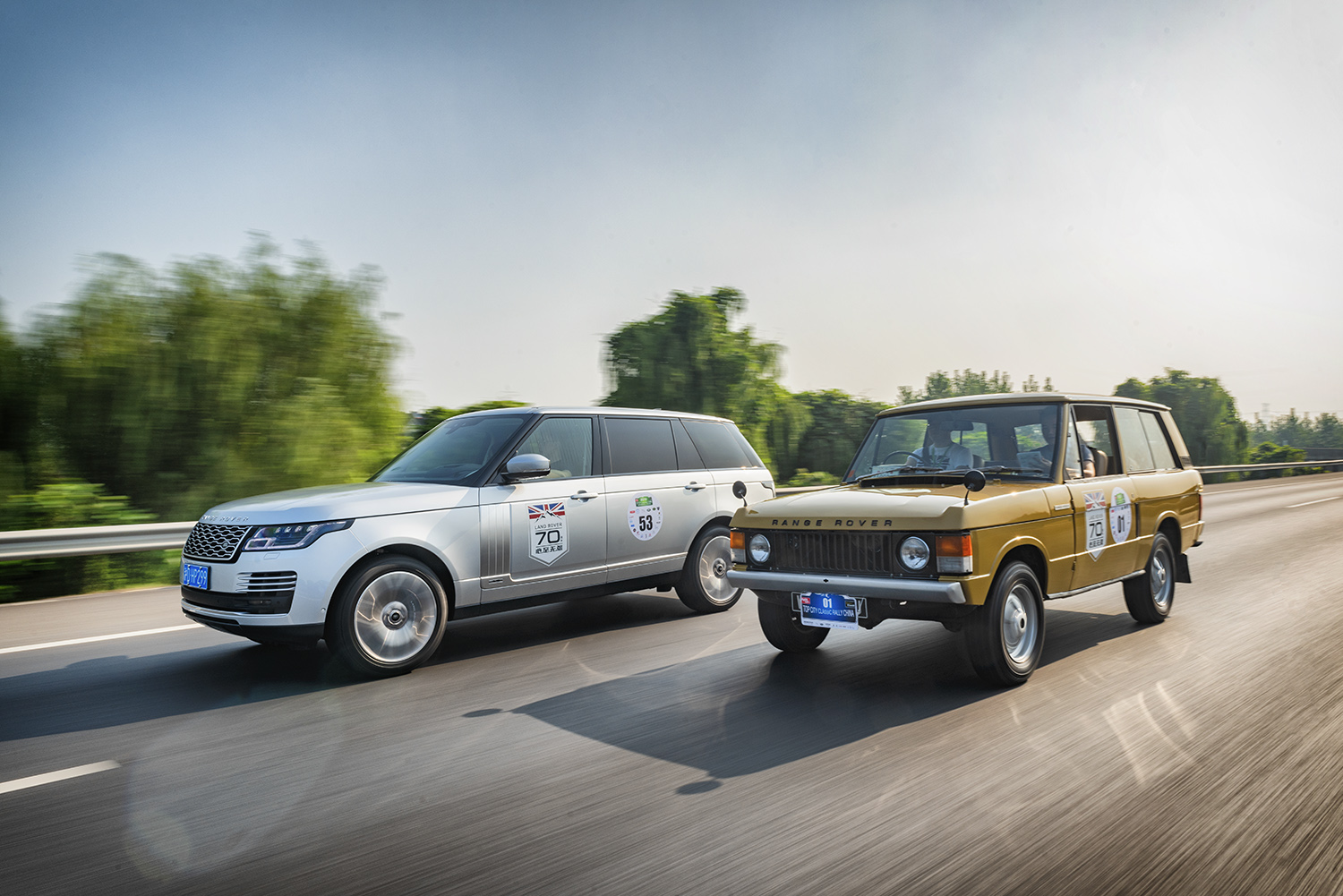 (参赛中的第一代路虎揽胜和2018年款路虎揽胜)