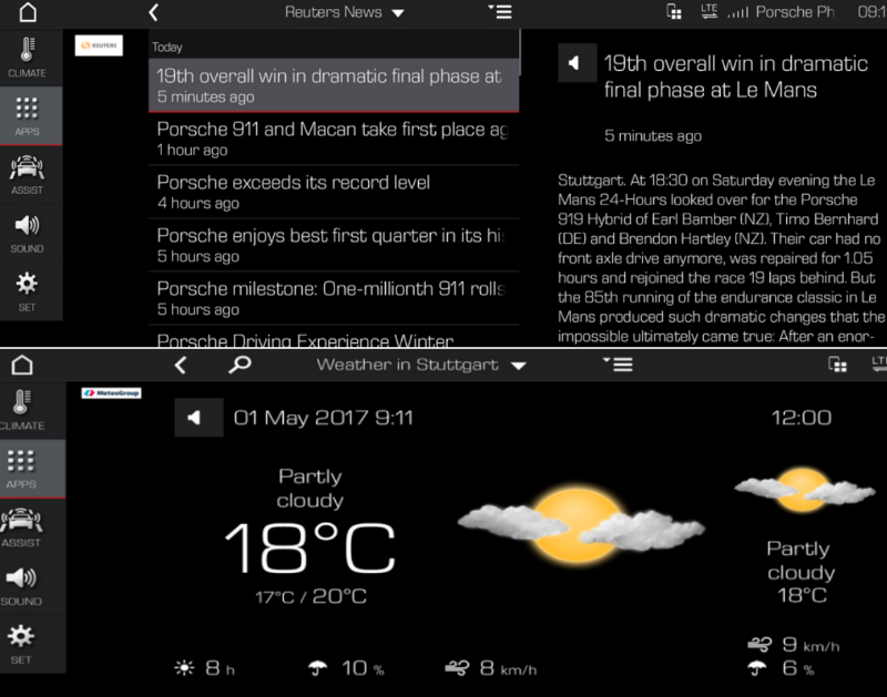 每周的工作生活,从坐进新款Macan的座舱开始。首先,你可能想要趁上班之前了解一下今天的重要新闻,当然还有天气状况,这决定了下午你是否要提前出发去机场迎接你的客户。现在有了这位贴心的智能管家,你需要做的只是点亮PCM系统搭载的10.9英寸中控触摸屏,天气、新闻都能随时在线查看。为了在行驶中也能让你随时了解相关信息,这位聪明的管家甚至还会把天气显示在你的导航地图中,细致贴心。