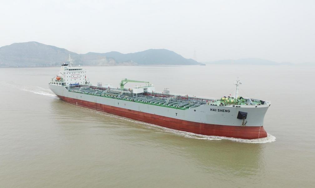 图为芜湖造船厂建造的安徽省首艘28000吨化学品成品油船