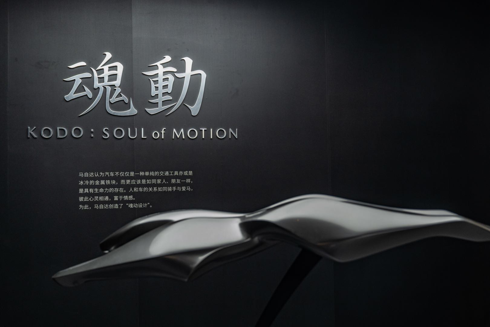 马自达汽车株式会社设计・品牌风格负责人前田育男表示:“谋求资源的高效化利用是现代社会的发展趋势。虽然自动化交通工具不断产生新的价值,但人们对于‘人与车的一体感’、‘工具与心灵的交互’这类‘联系’的思考却越来越淡薄。正因为处在这样一个时代,我们更应该珍惜爱车,将它视为身边不可或缺、乃至像家人一样拥有生命的个体。这便是我们魂动设计的最终目标。”
