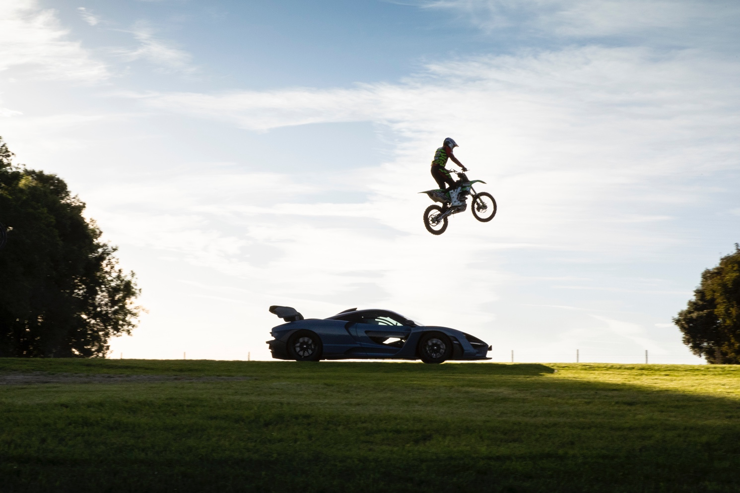 迈凯伦塞纳与三辆越野摩托车于古德伍德山顶上演史诗对决
