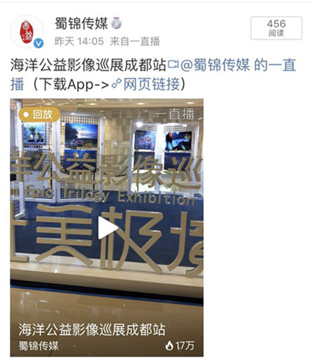 蜀锦传媒直播壮美极境海洋公益影像成都巡展 带17万网友观展