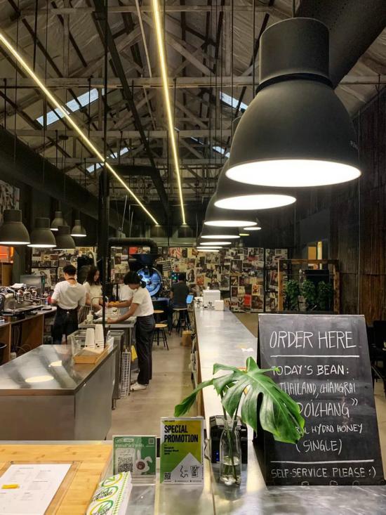 这间咖啡烘焙坊位于一栋由二战遗留的大厂房改造而成的艺术设计空间 Warehouse30 内,由泰国顶尖的建筑师 Duangrit Bunnag 设计。大厂房根据不同功能划分成数个空间,而每个空间内部都相通,可以自由的穿梭其中。这里集合了画廊、餐厅、咖啡馆、商店、各种各样的创意产品和手工艺品,同时拥有影院空间和工作空间,是个购物娱乐、工作学习,或者休息放松的好地方。每年的曼谷设计周在此举办,艺术氛围搭配集市上各种各样的艺术品和美食,是喜欢设计的文艺青年不可错过的好地方。