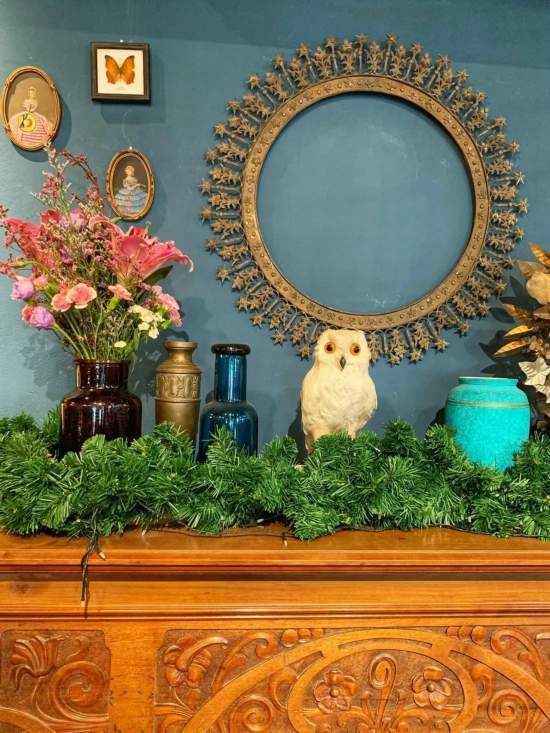 餐区装饰着马赛克地砖,墙上挂满色彩斑澜的蝴蝶标本,异域风格的皮件、饰品与小物随处可见。